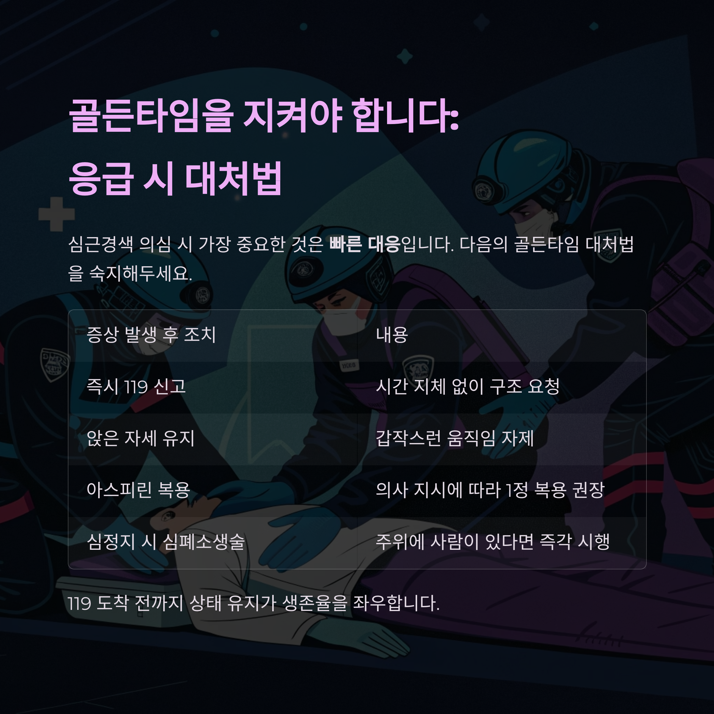 심근경색 의심 시 가장 중요한 것은 빠른 대응입니다.