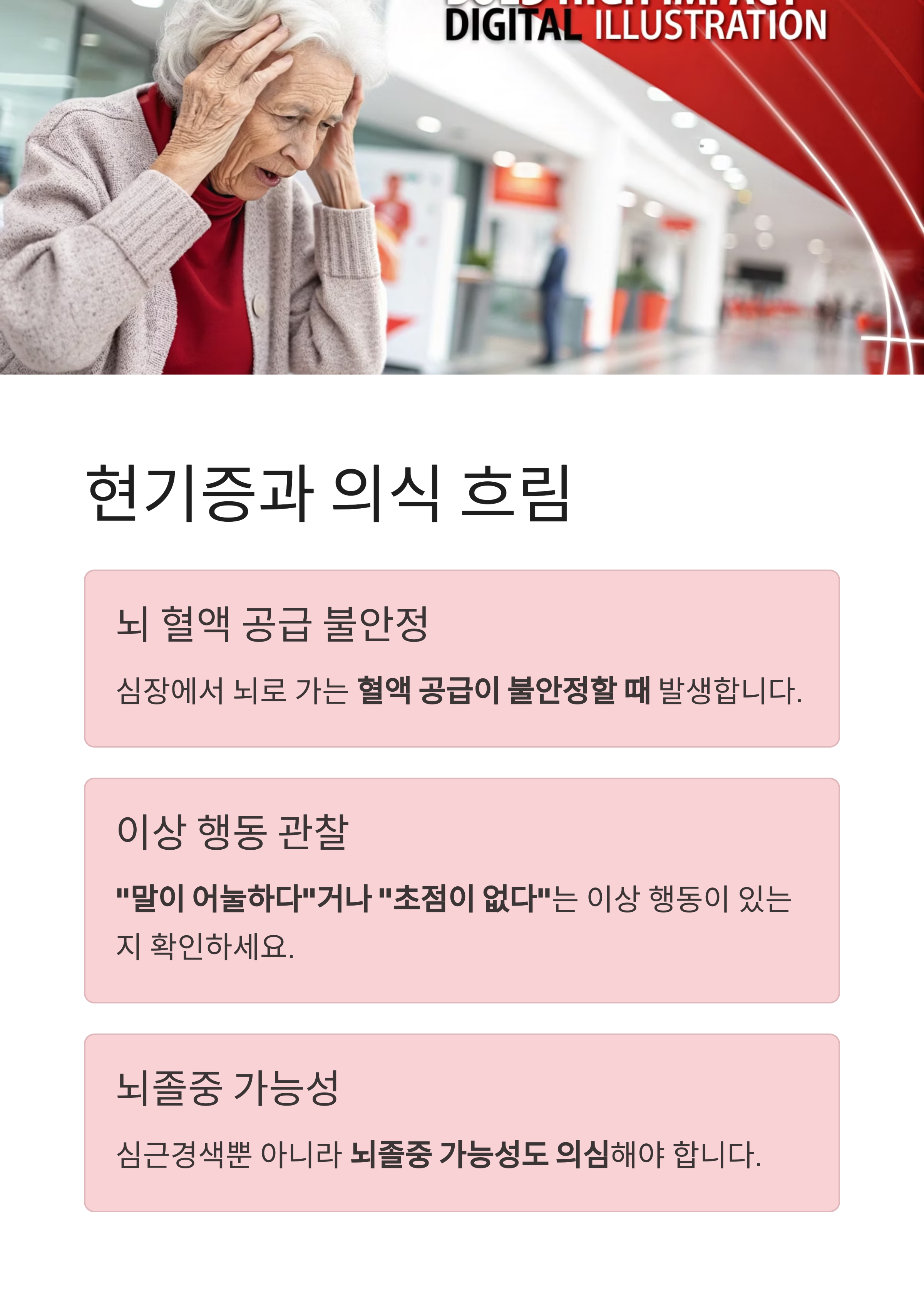 이러한 증상이 있다면 지체 없이 119를 통해 응급실로 이동해야 합니다.