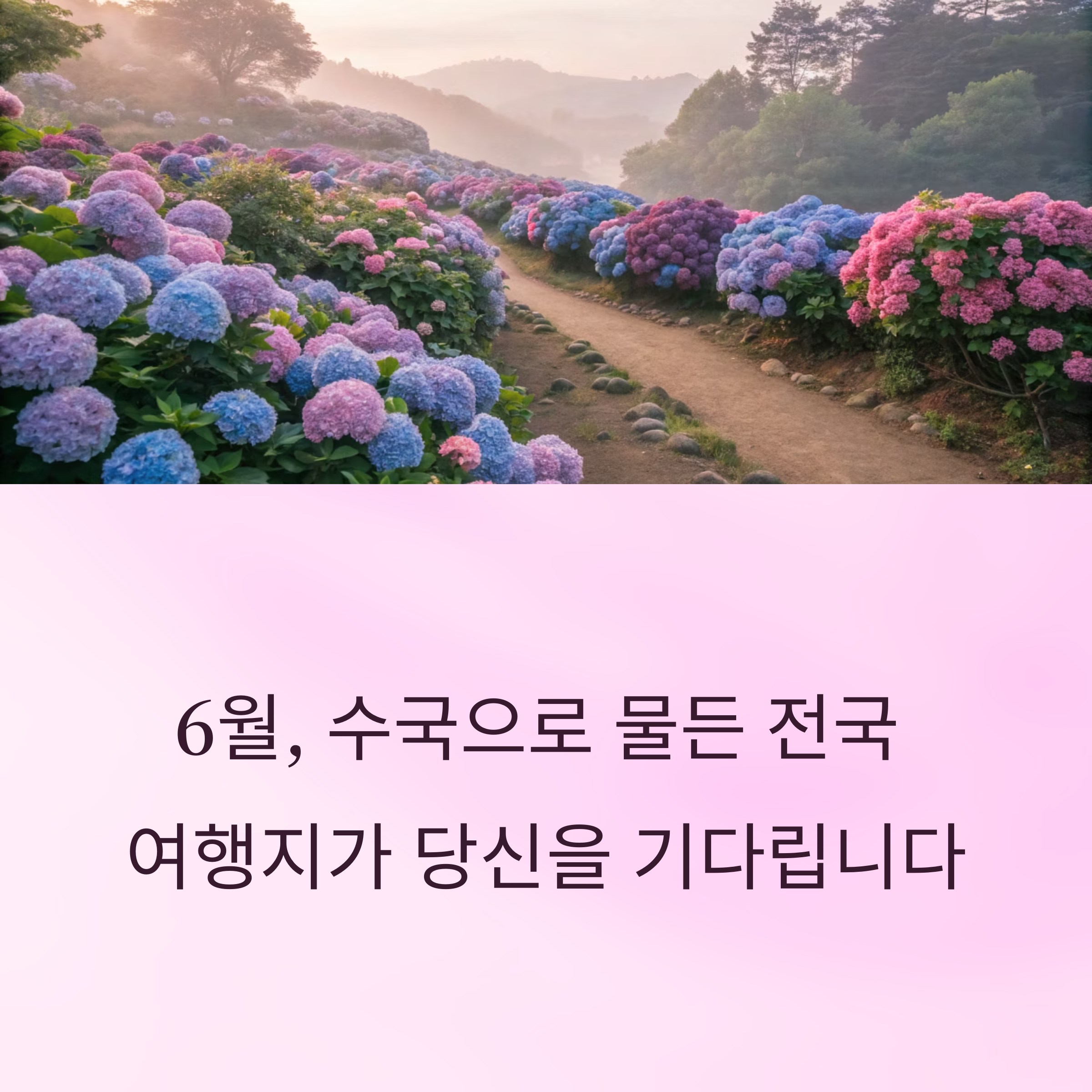 이번 6월, 전국 각지에서 펼쳐지는 수국 축제를 통해 아름다운 자연의 향연을 즐겨보세요. 가족, 연인, 친구와 함께하는 수국 여행은 잊지 못할 추억이 될 것입니다.
