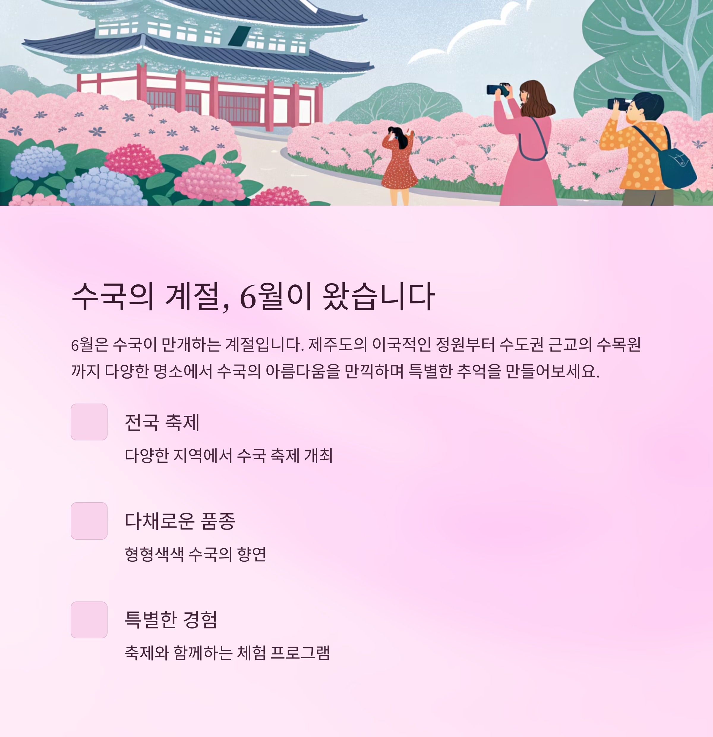 초여름의 낭만, 수국 명소와 축제를 한눈에