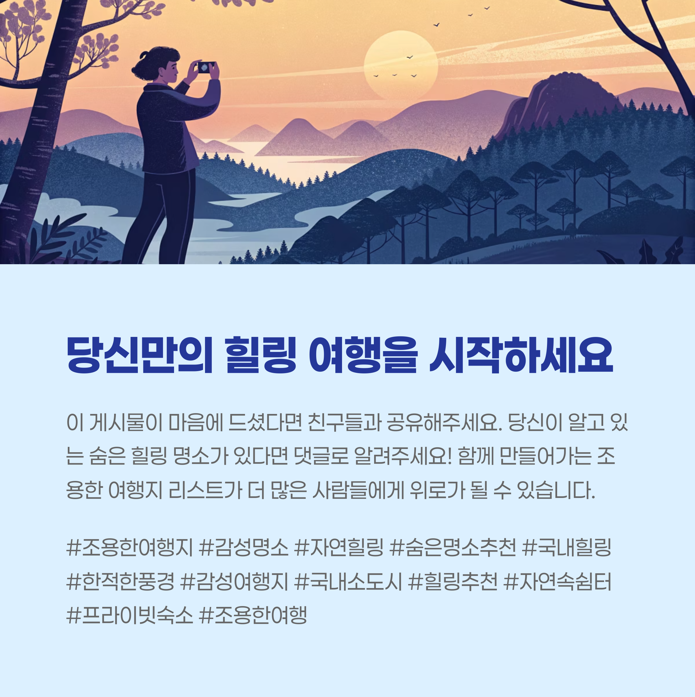 한국 곳곳에 숨어 있는 조용하고 감성적인 여행지가 최고의 선택이 됩니다
