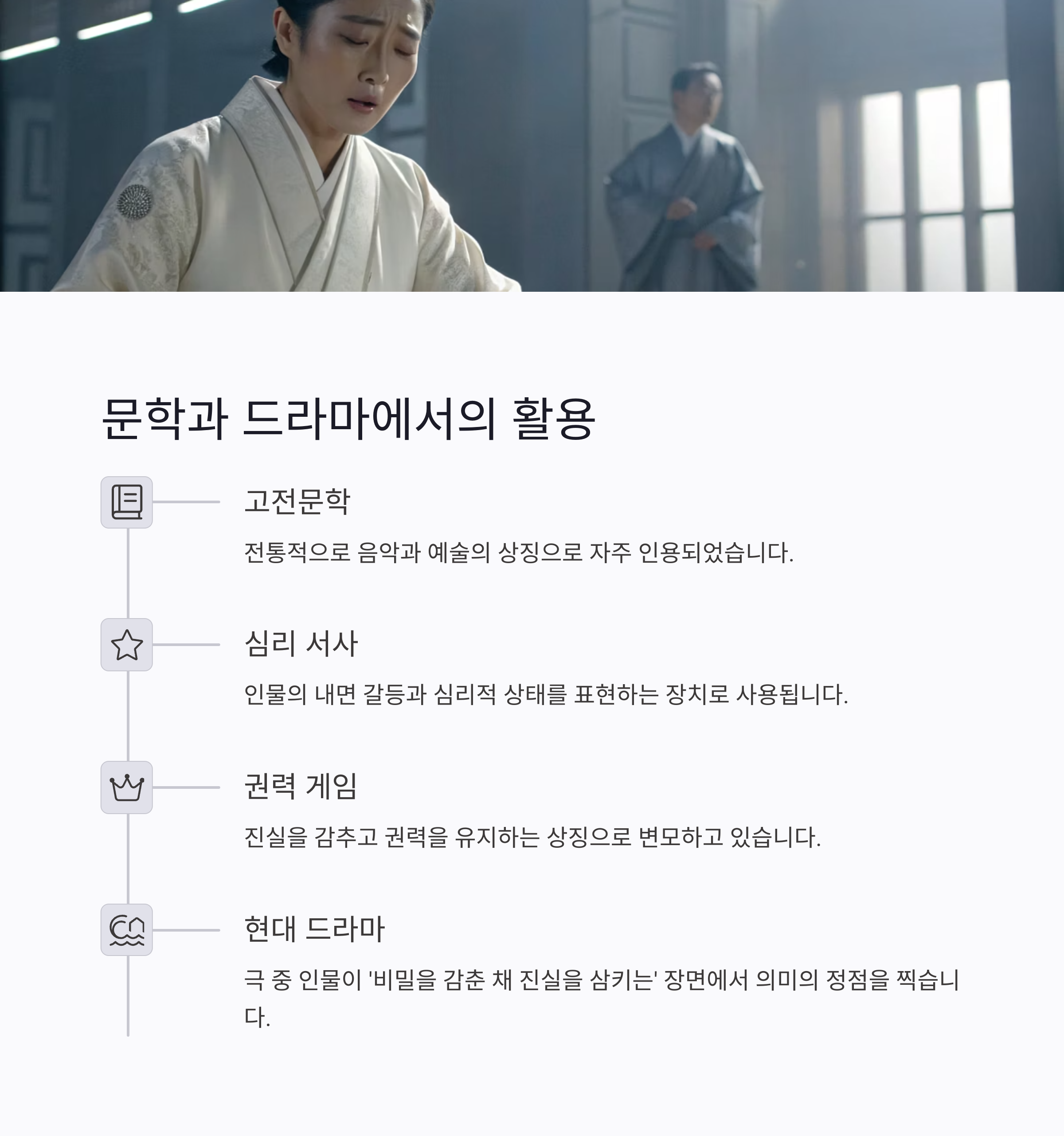 현대에는 심리 서사와 권력 게임의 키워드로 변모하고 있습니다.