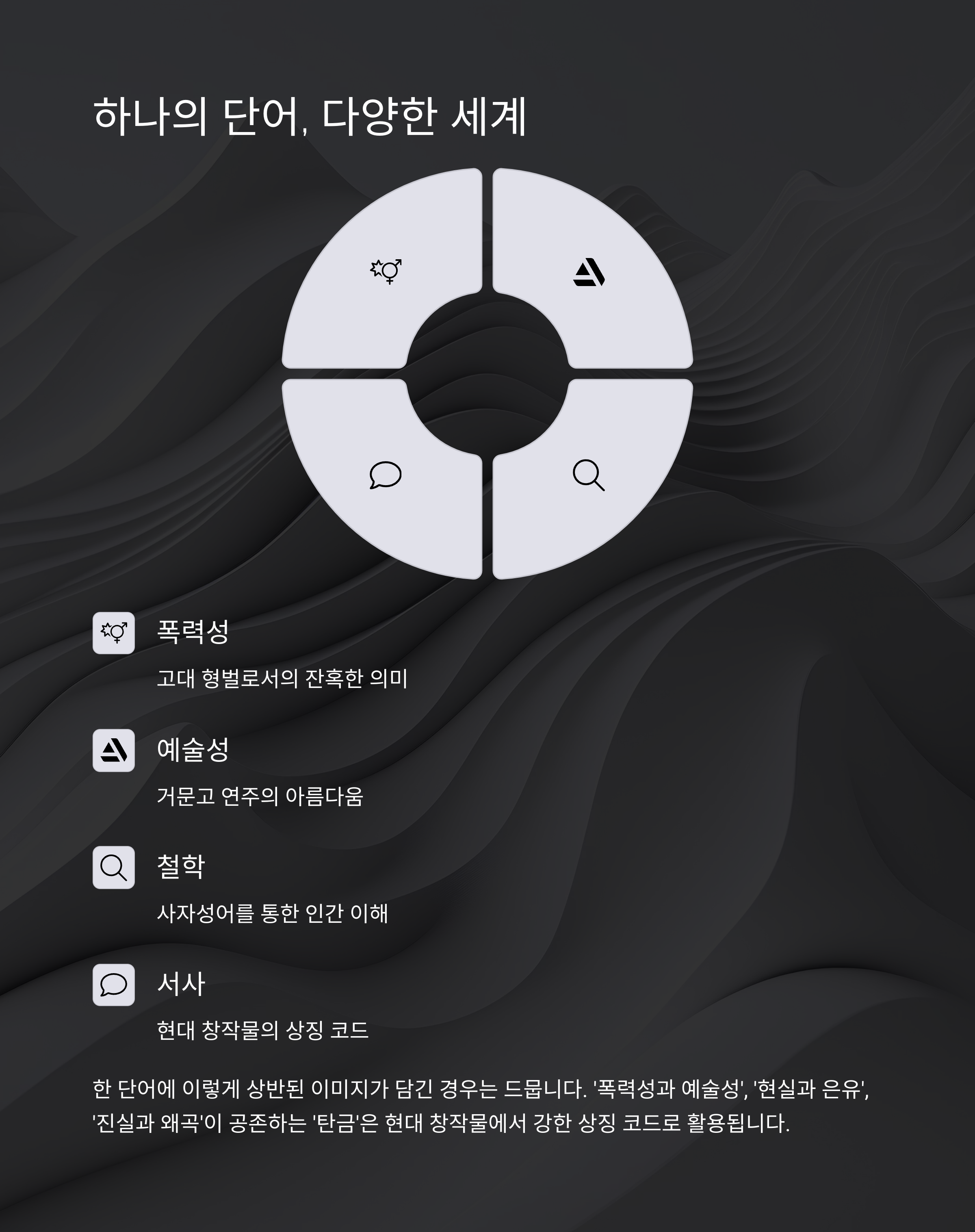 따라서 단어 하나에도 감춰진 층위와 의미를 발견하는 자세가 필요합니다.