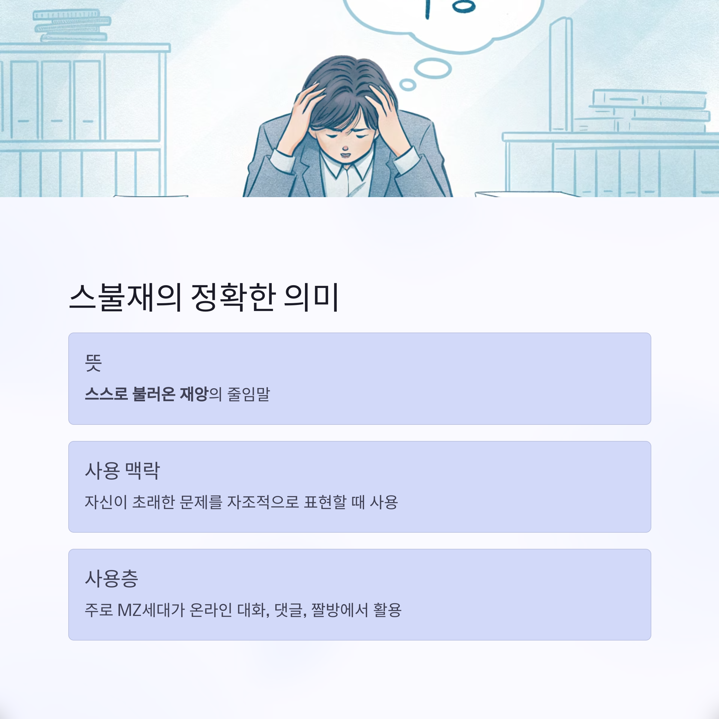 ‘스불재’는 "스스로 불러온 재앙"의 줄임말입니다.