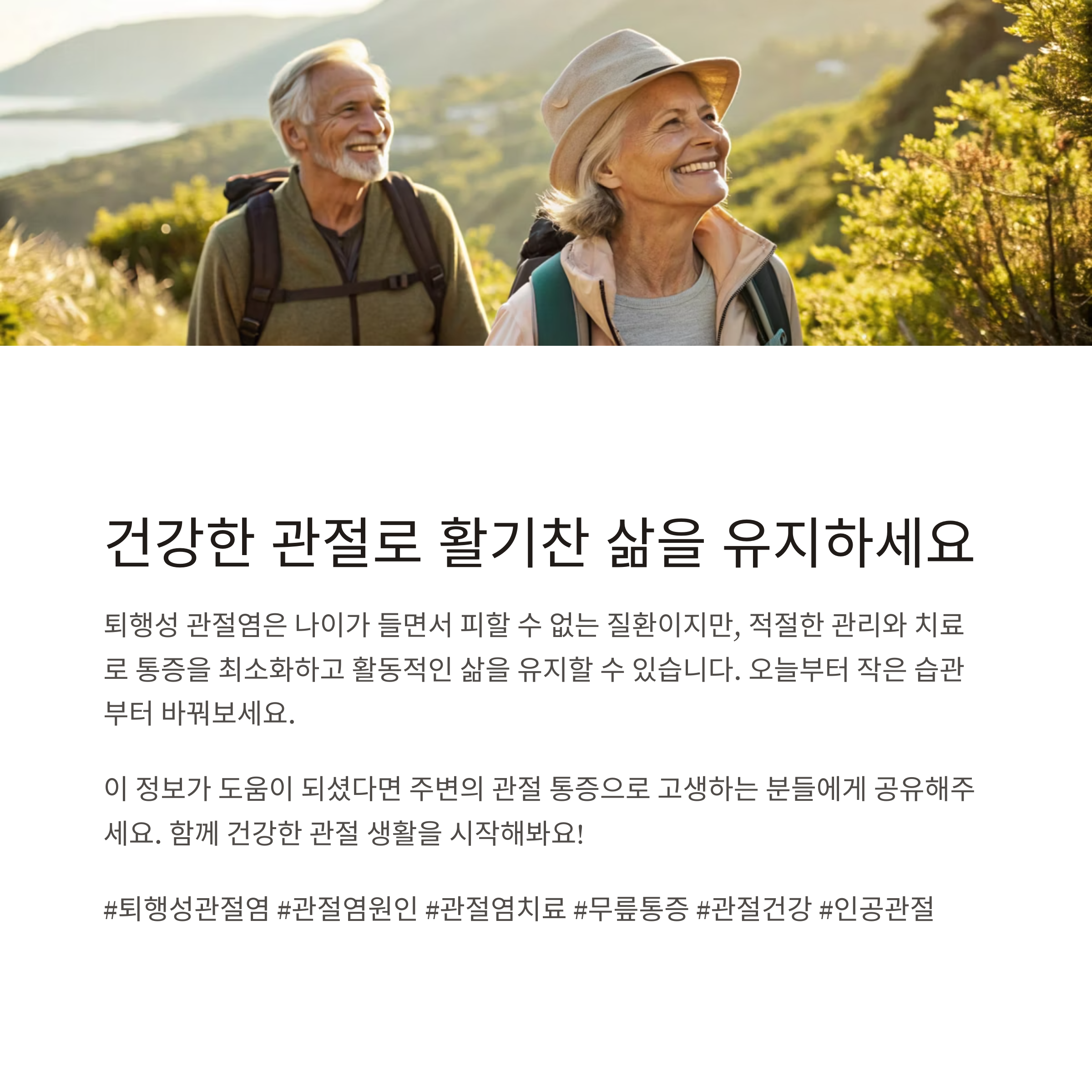 퇴행성 관절염은 만성질환인 만큼, 일상 속 관리가 중요합니다.