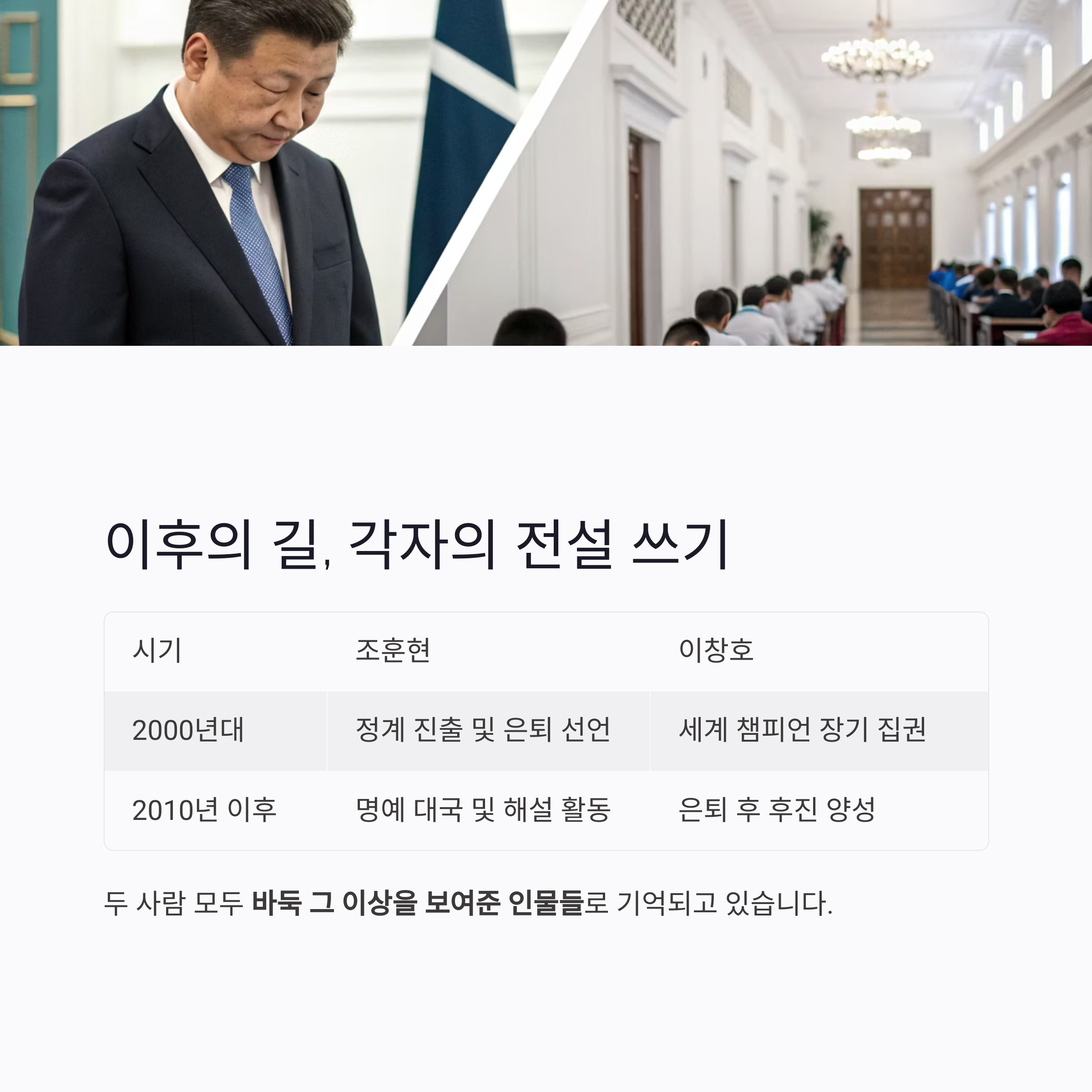 두 사람 모두 **"바둑 그 이상을 보여준 인물들"**로 기억되고 있습니다