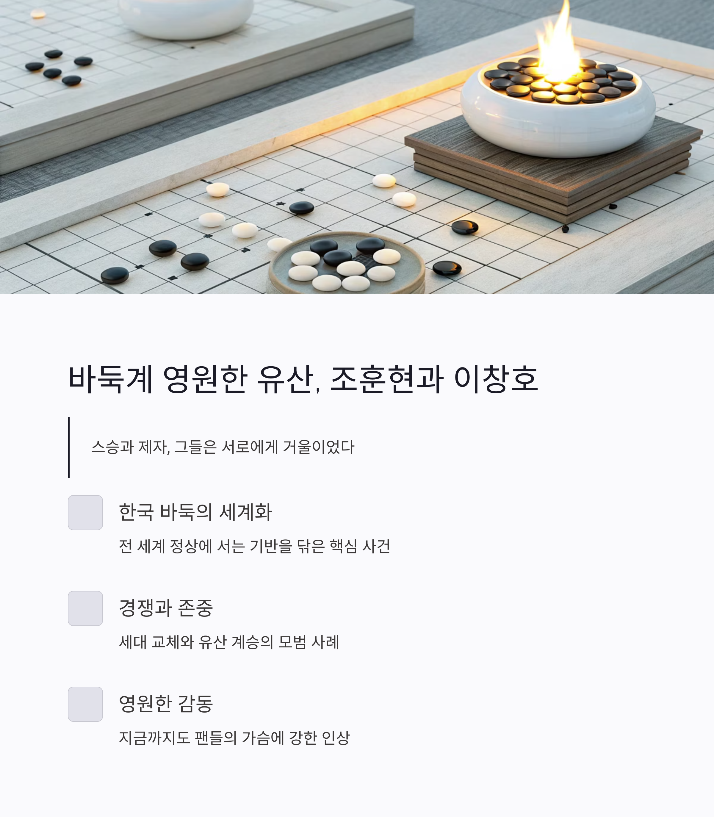 조훈현과 이창호의 바둑 대결은 단순한 승패를 넘어