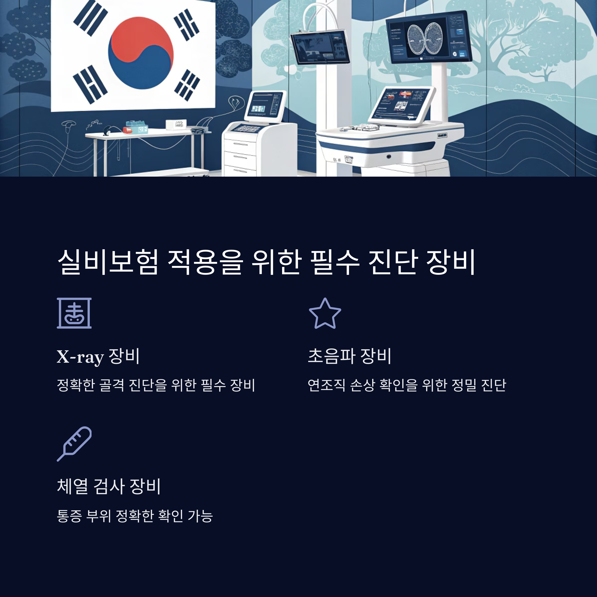방사선(X-ray), 초음파, 적외선 체열진단(DITI) 등의 진단 장비 보유 여부는 중요합니다.