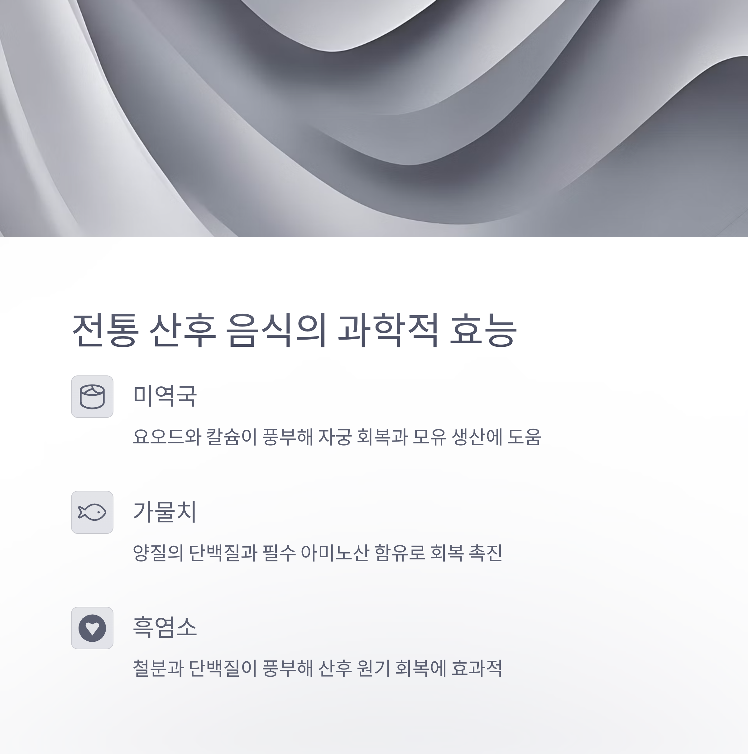 미역국, 흑염소, 가물치 등 전통적인 산후조리 음식들이 실제 어떤 과학적 근거를 갖고 있는지 분석합니다.
