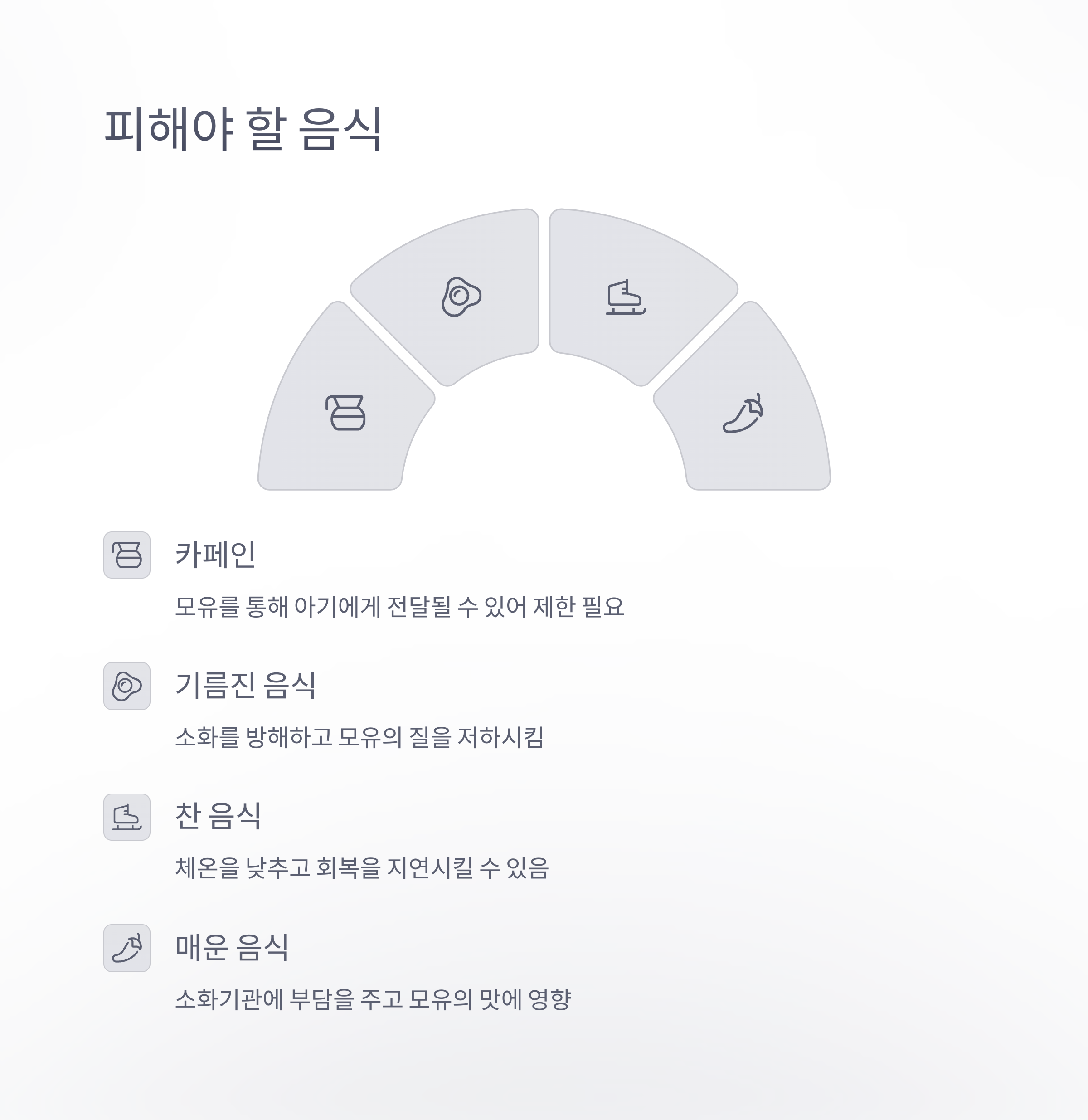 특히 기름기, 자극적인 조미료, 카페인은 철저히 피해야 합니다.