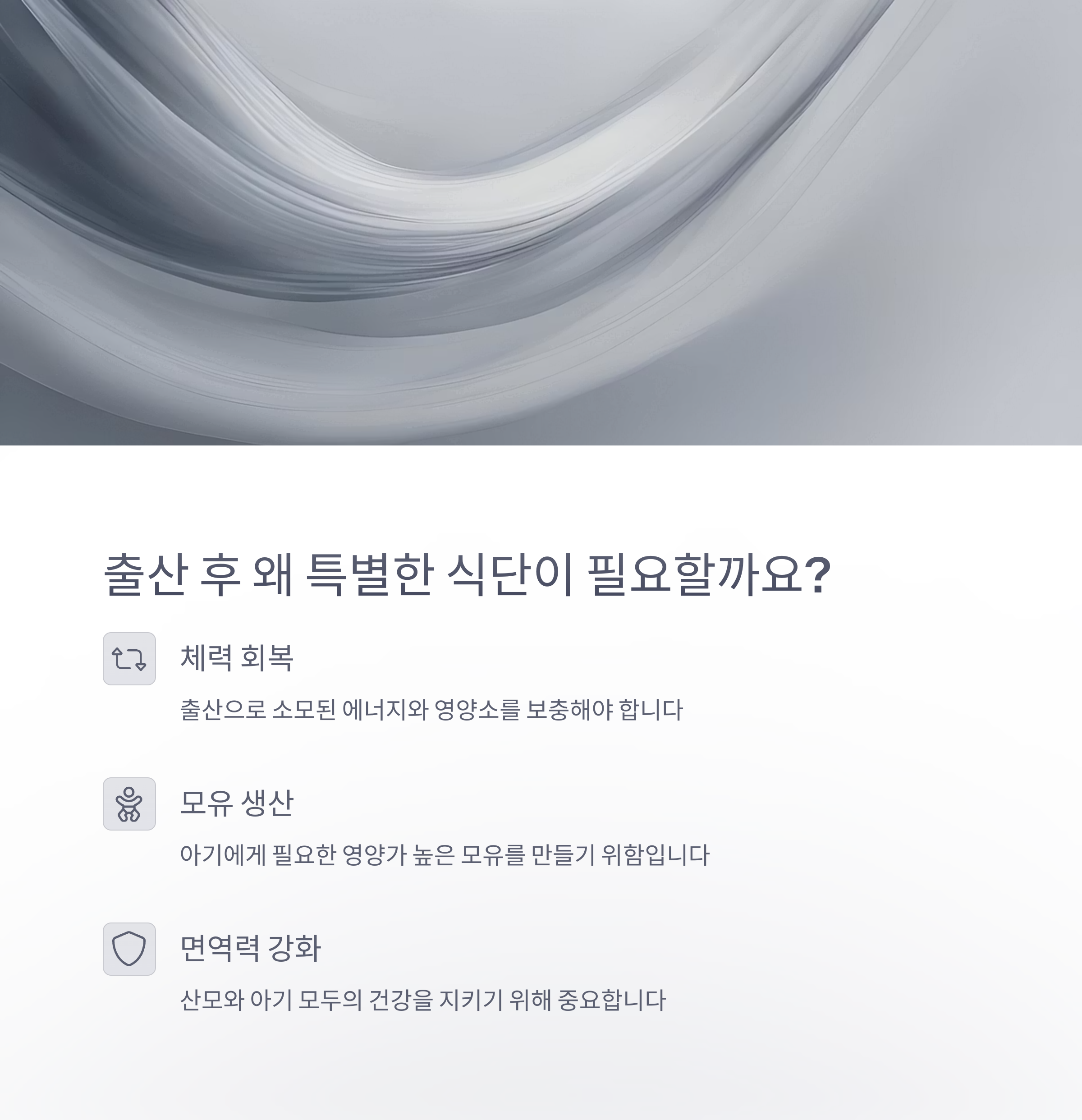 산후 영양 관리는 산모의 회복과 아기의 성장에 절대적인 영향을 미칩니다.
