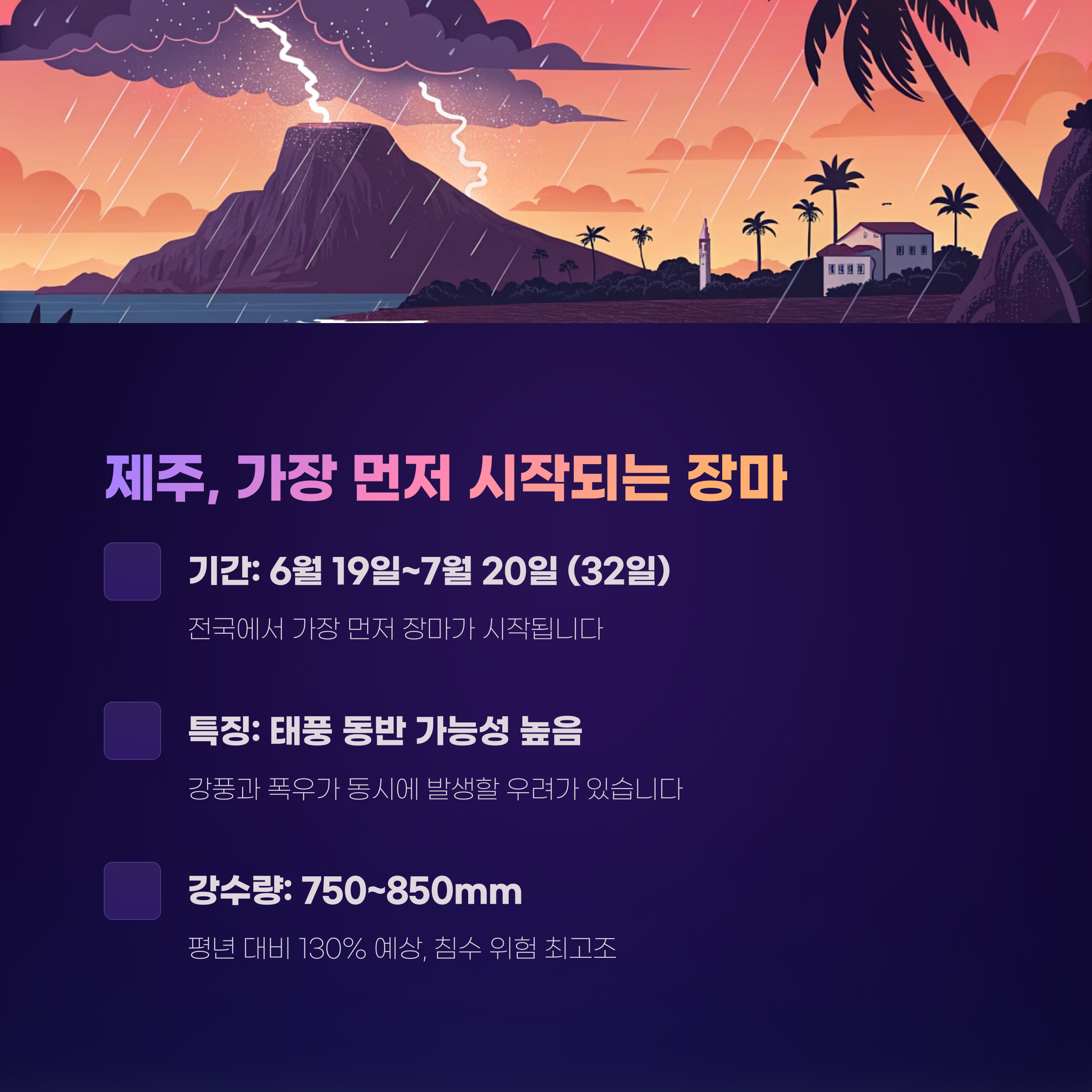 2025년 여름 장마철 완벽 가이드 : 시작일, 지역별 비 예보, 생존 전략