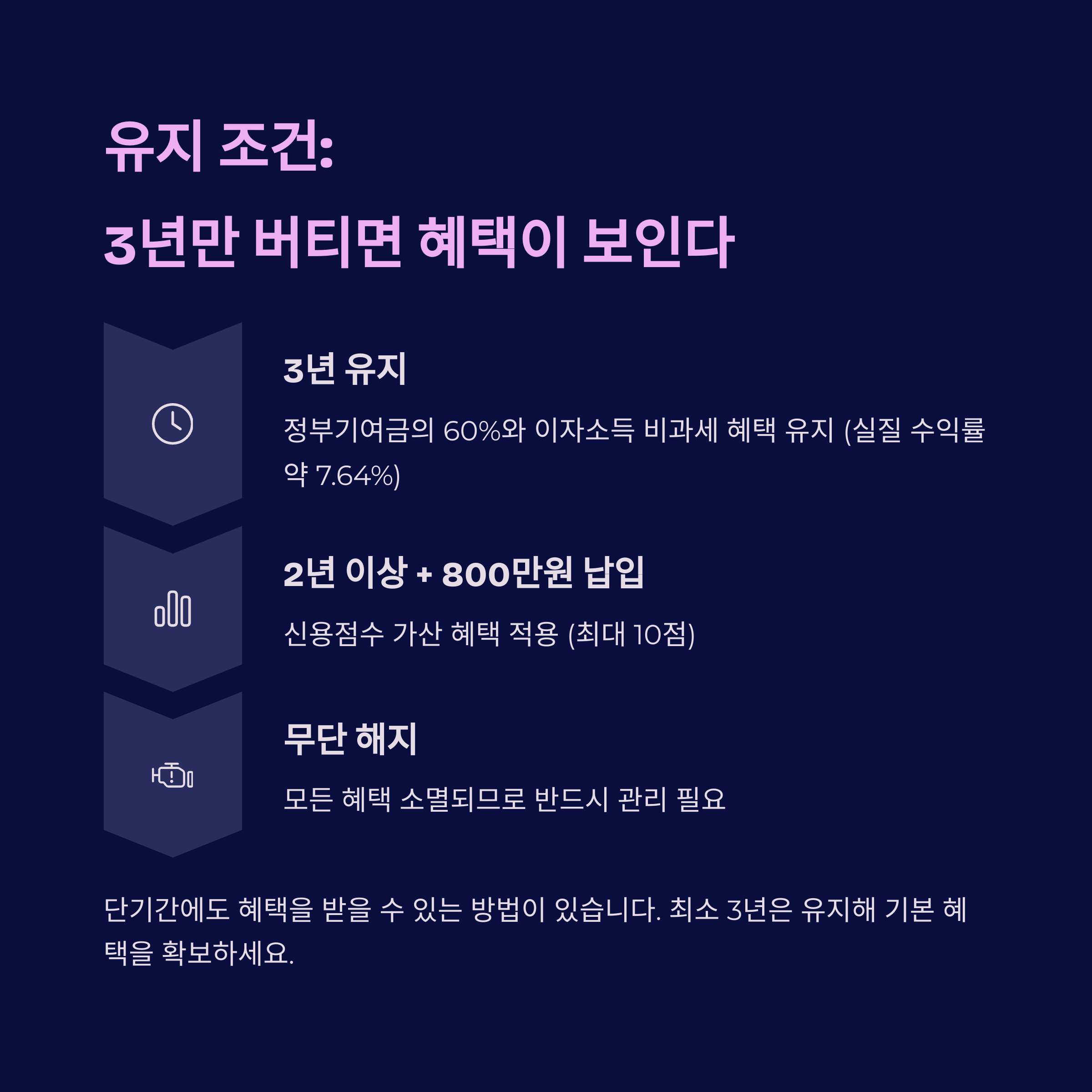 4. 유지 조건 : 3년 이상 유지 시 부분 수령 가능
