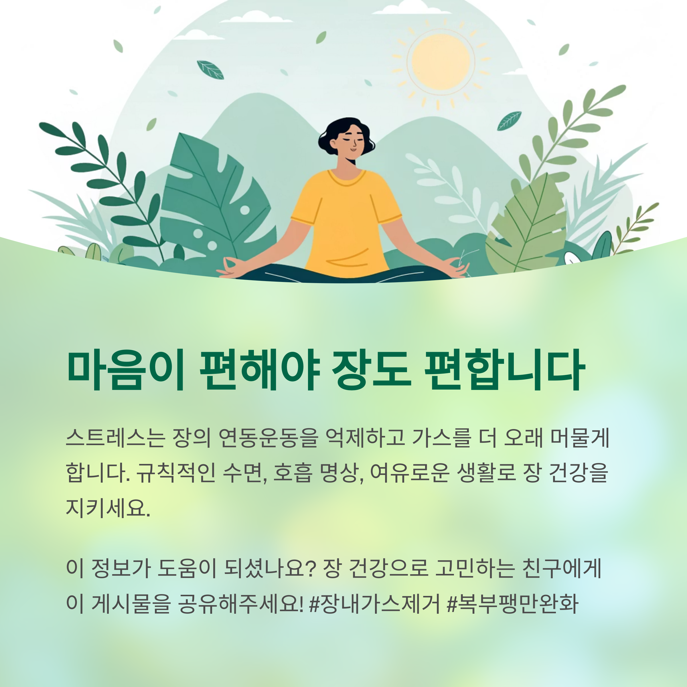 영향을 줍니다. 마음이 편해야 장도 편해집니다.