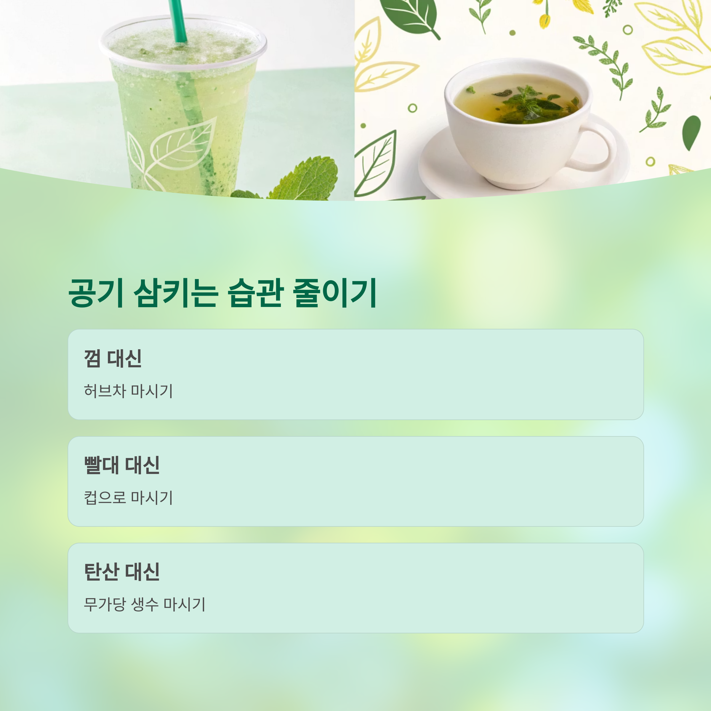 | 탄산음료 섭취 | 무가당 생수 마시기 |