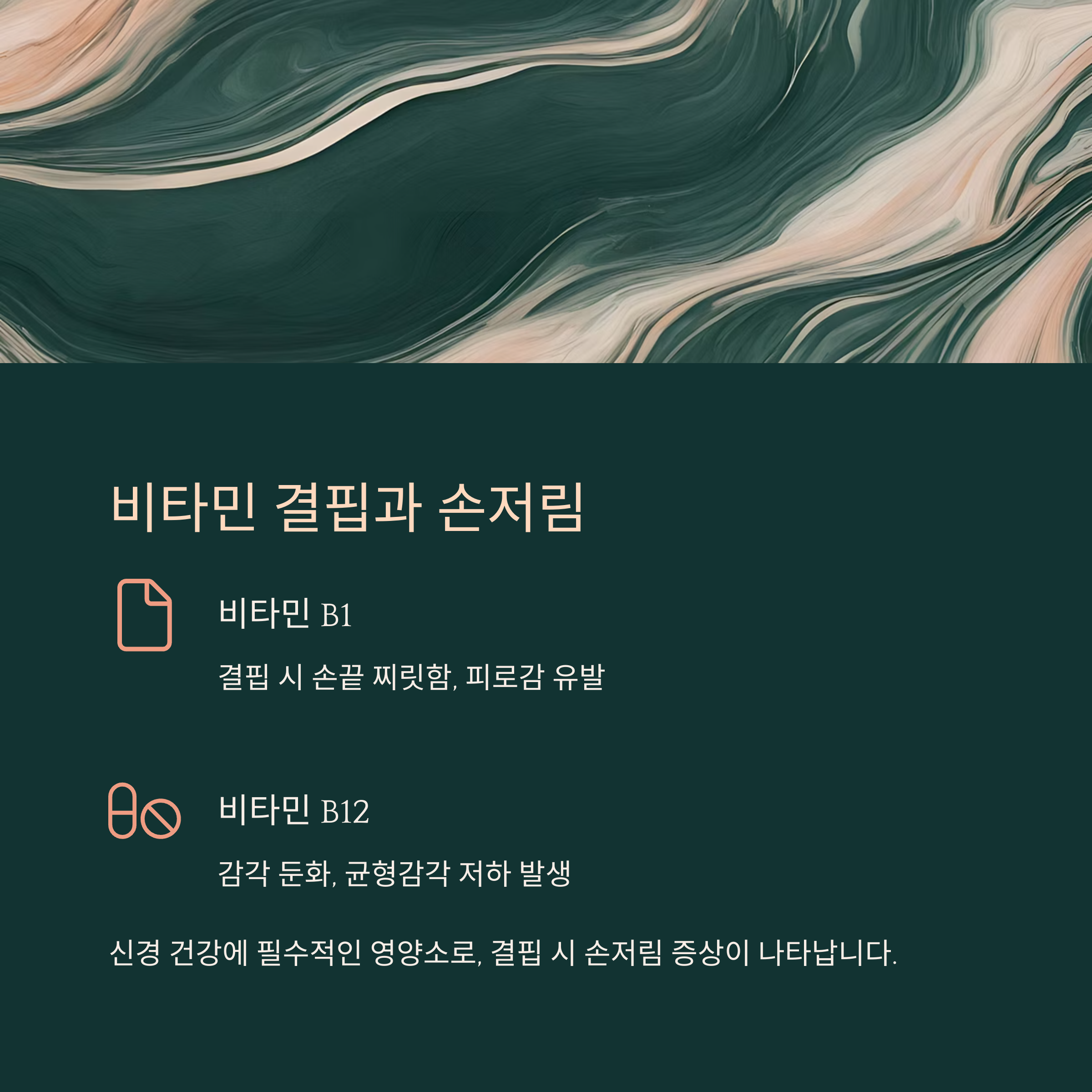 | 비타민 B1 | 손끝 찌릿함, 피로감 |
