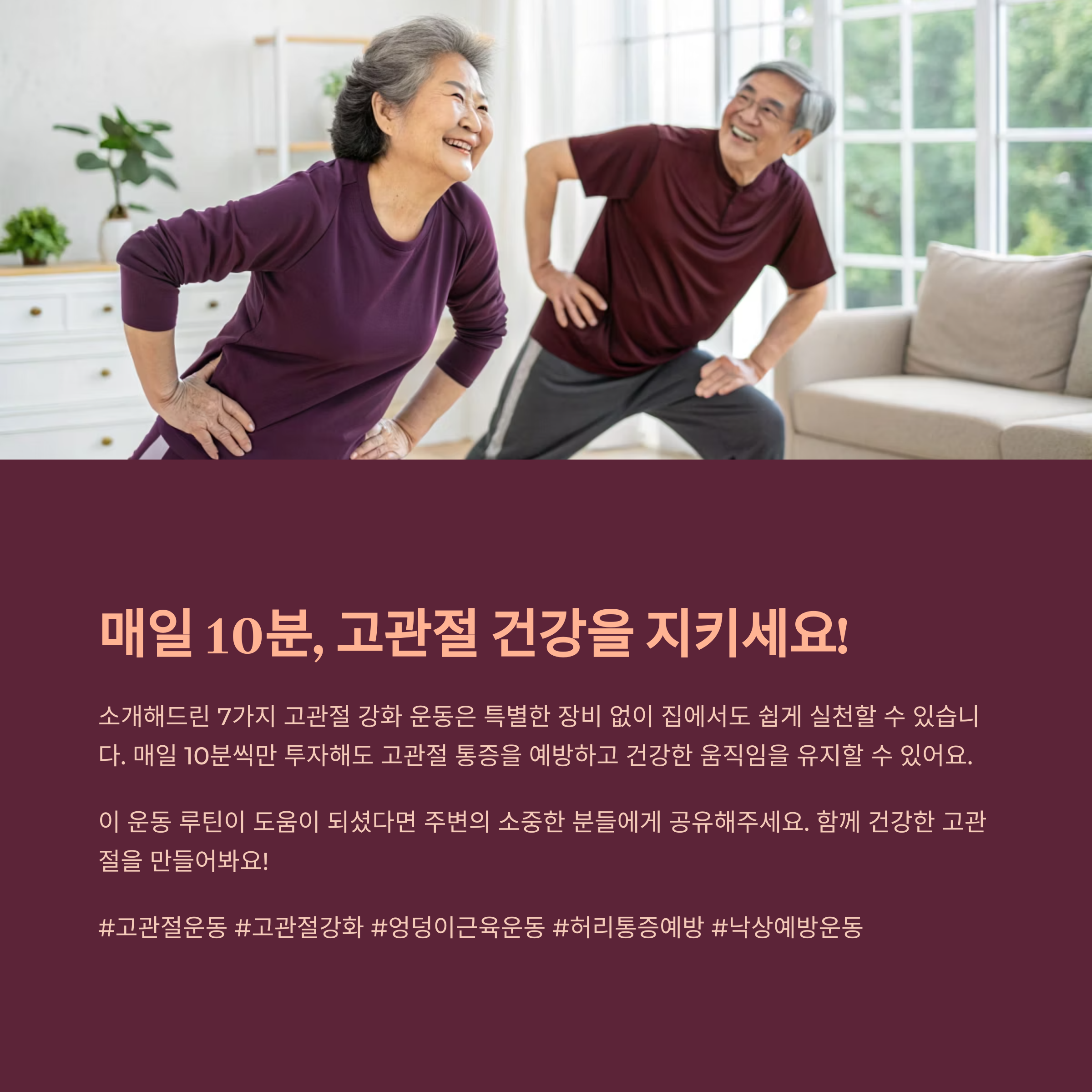 고관절은 우리 몸에서 움직임의 중심축이 되는 부위로, 올바른 근력과 유연성을 유지해야만 일상적인 움직임이 편안해집니다. 특히 중년 이후나 운동량이 부족한 경우 고관절에 통증이 자주 발생할 수 있어 예방이 중요합니다. 본 글에서는 고관절을 튼튼하게 만들어주는 7가지 운동 루틴을 소개하며, 매일 실천 가능한 간단한 방법들을 안내해드립니다.