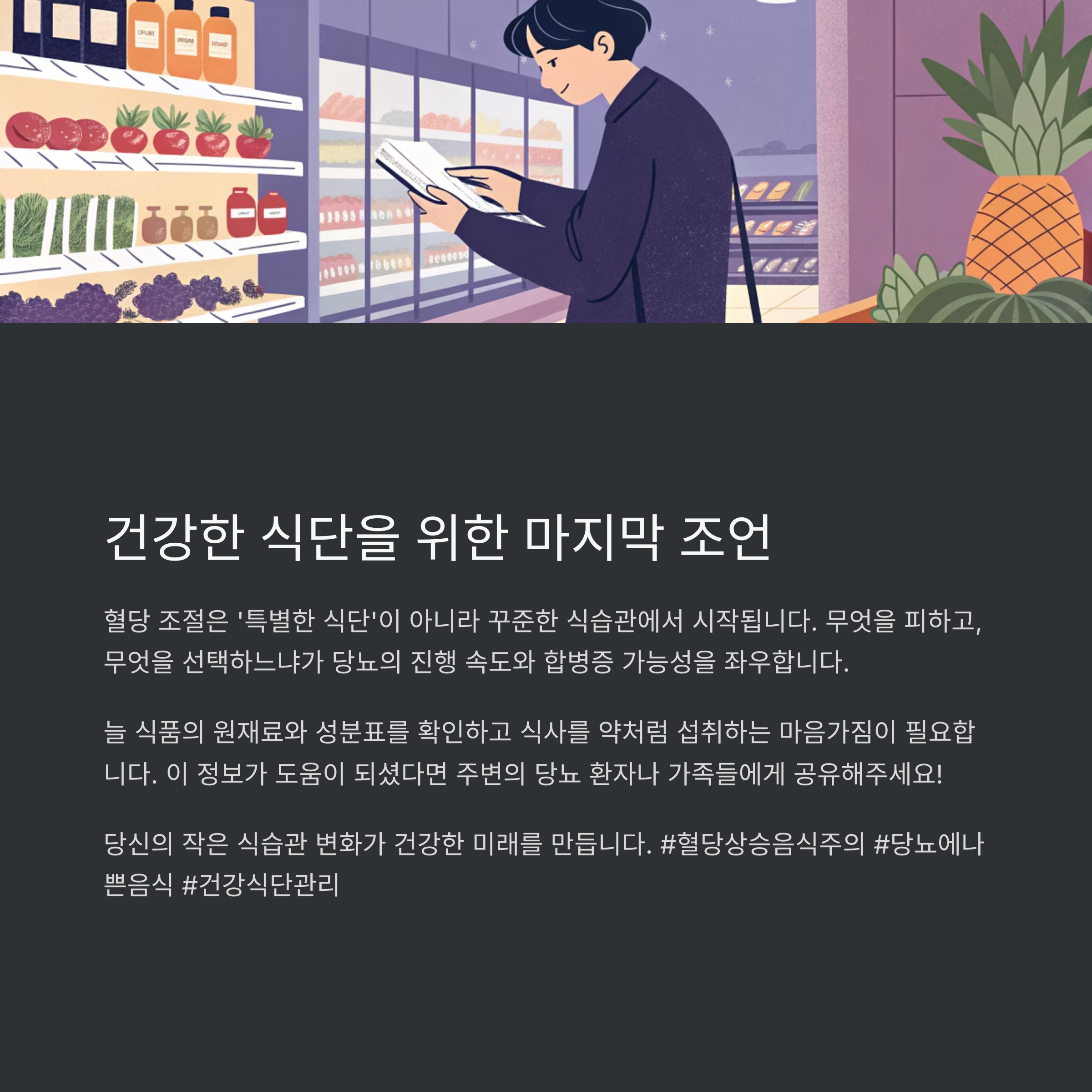 당뇨 환자의 식단은 그 자체로 치료이며 예방입니다.