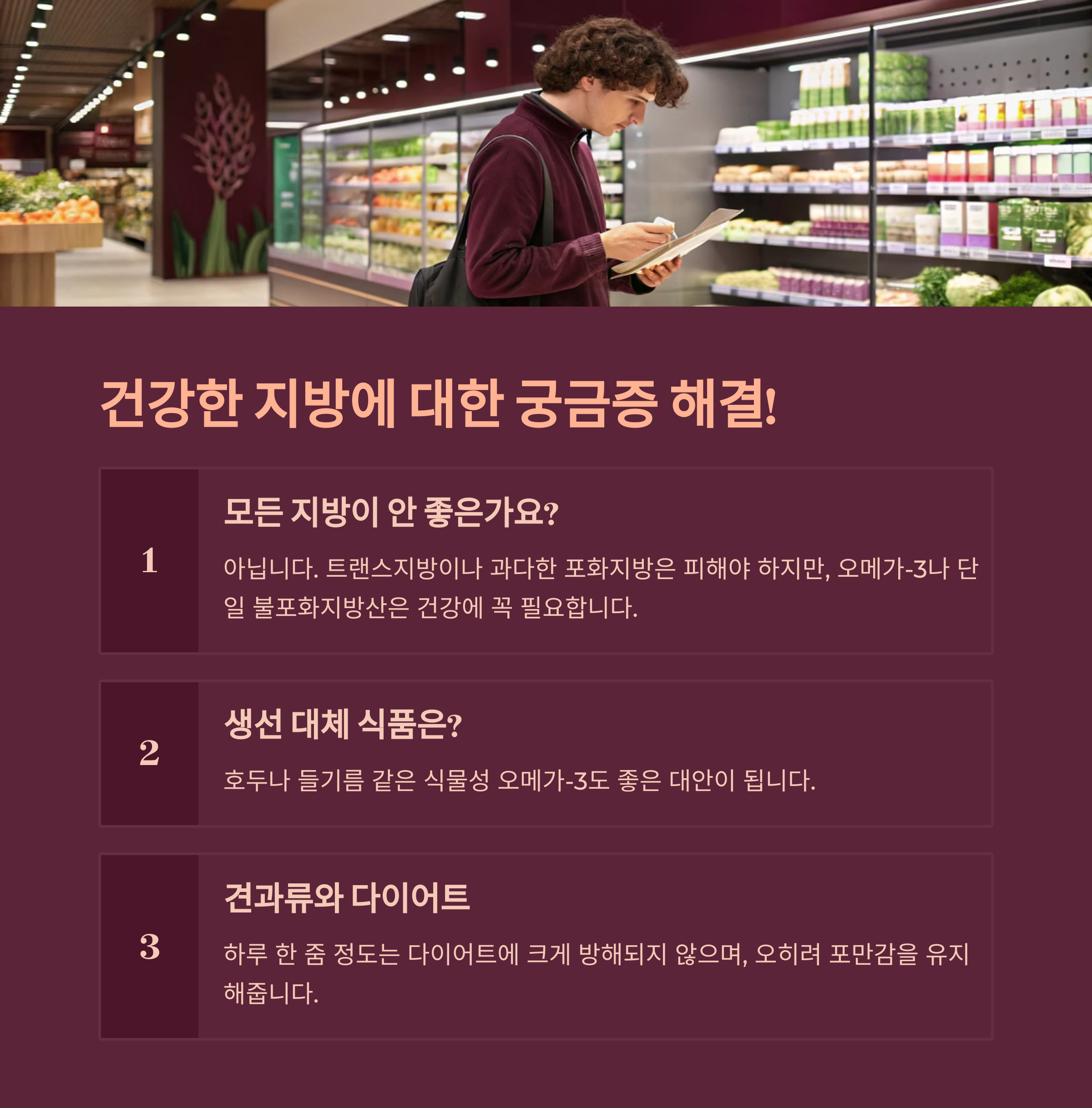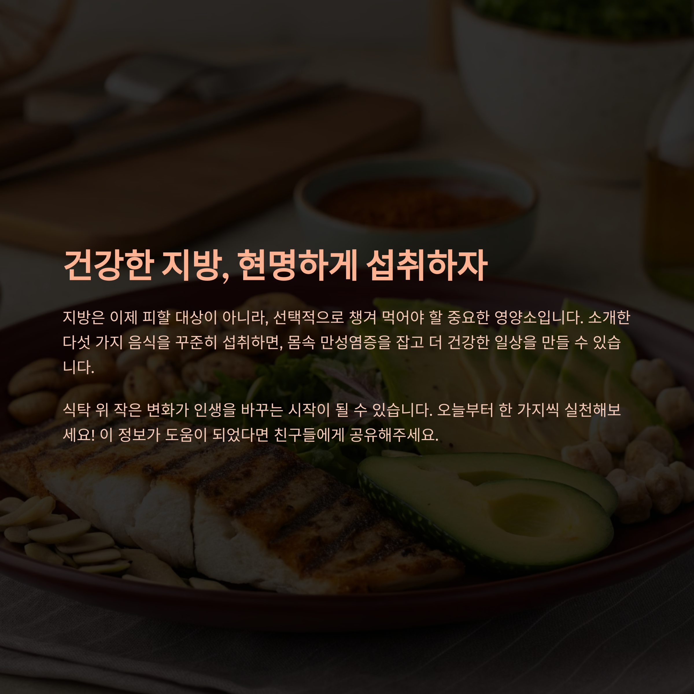 지방은 이제 피할 대상이 아니라, 선택적으로 챙겨 먹어야 할 중요한 영양소입니다.