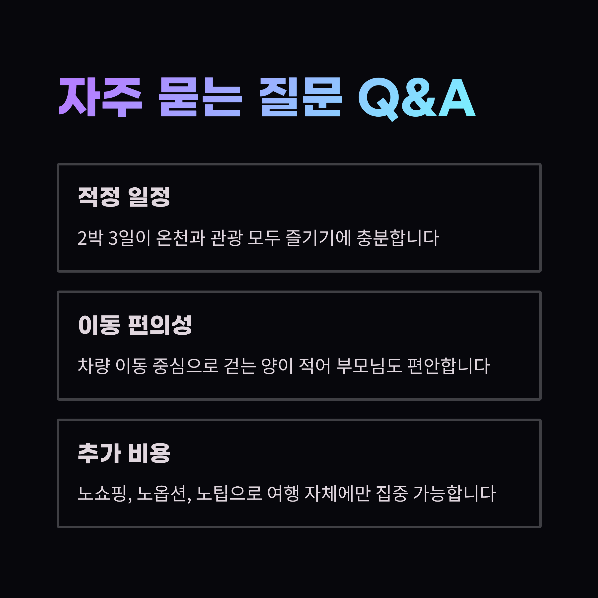 2박 3일, 부모님께 가장 알맞은 여유로운 구성이 핵심입니다.