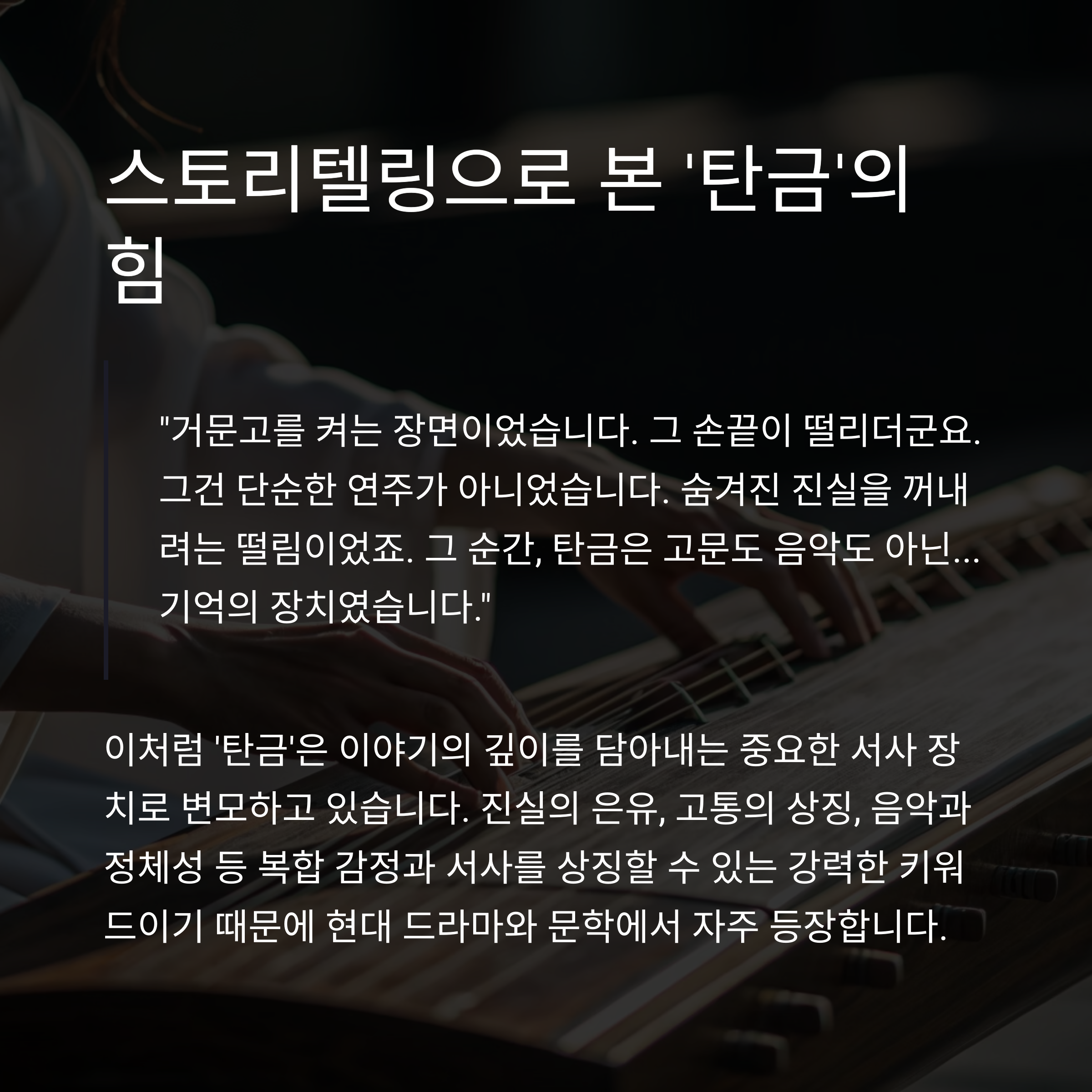 그 순간, 탄금은 고문도 음악도 아닌… 기억의 장치였습니다."