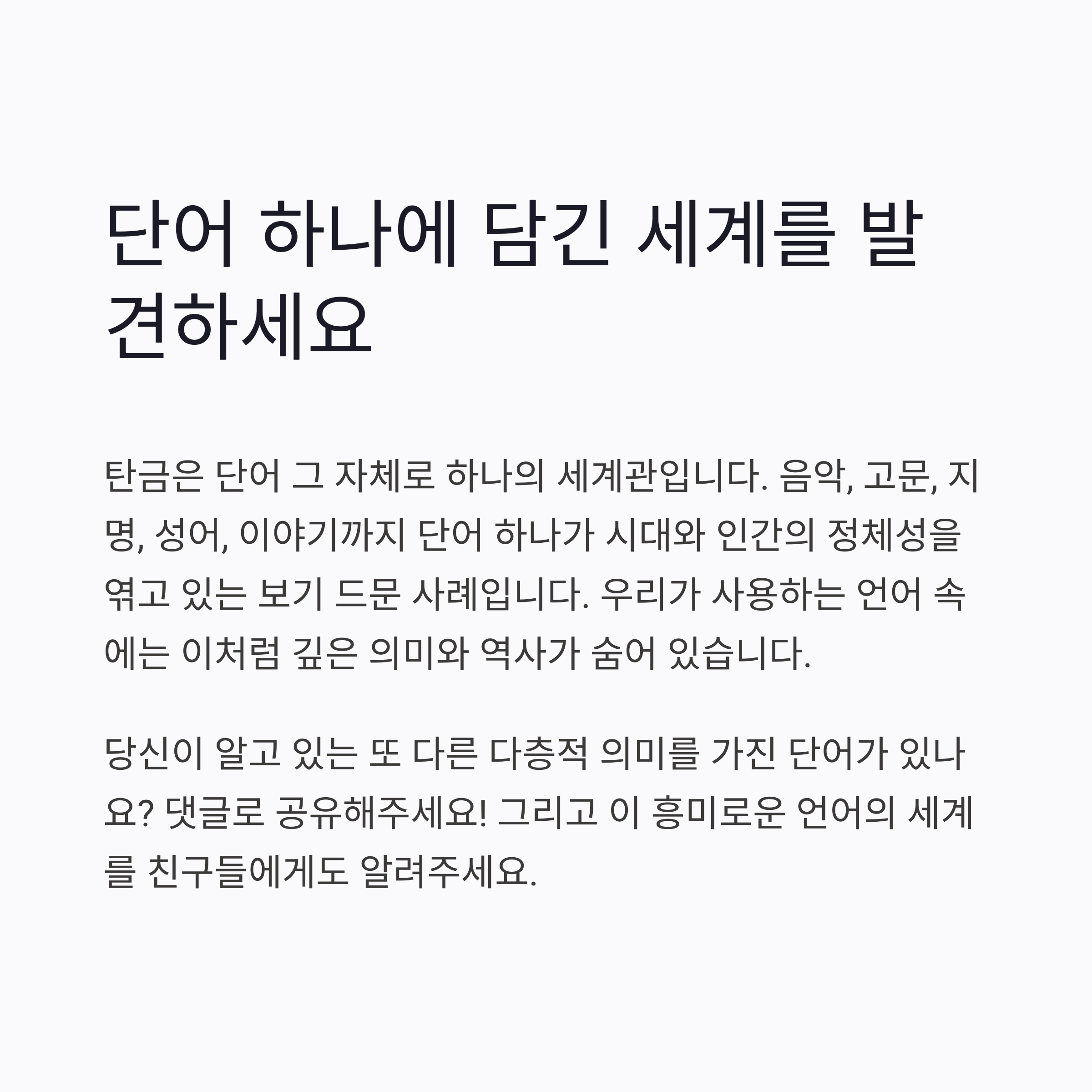따라서 단어 하나에도 감춰진 층위와 의미를 발견하는 자세가 필요합니다.